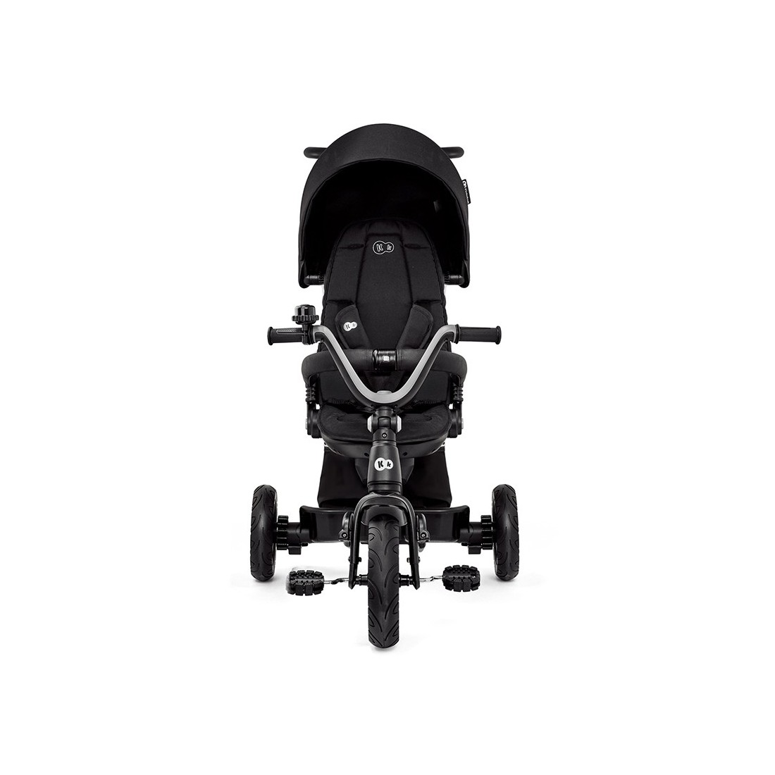 El triciclo garantiza la comodidad en todas las situaciones – el asiento del triciclo, además de ser giratorio, cuenta con un respaldo alto con posibilidad de inclinarse hacia una posición semiacostada, lo cual puede ser una solución perfecta durante la siesta. La barrera cubierta con cuero ecológico es agradable al tacto, y el reposapiés resulta muy útil cuando el niño quiere descansar de pedalear.