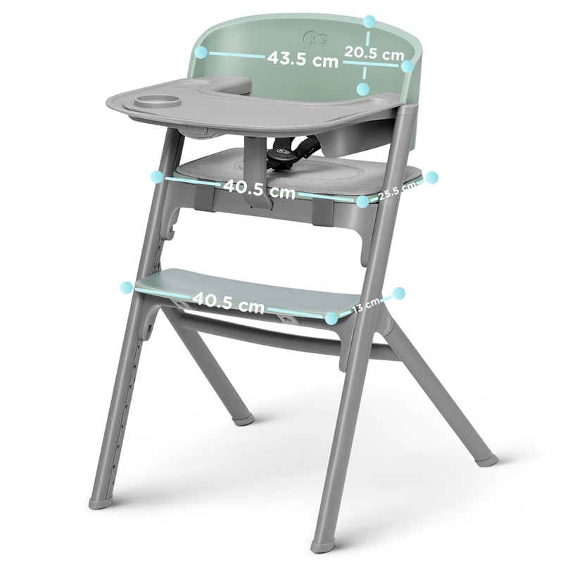 La estructura sólida: la estructura de la trona de aluminio y acero es sólida y estable. Las patas alargadas garantizan la seguridad del niño y hacen que la trona funcione por años.