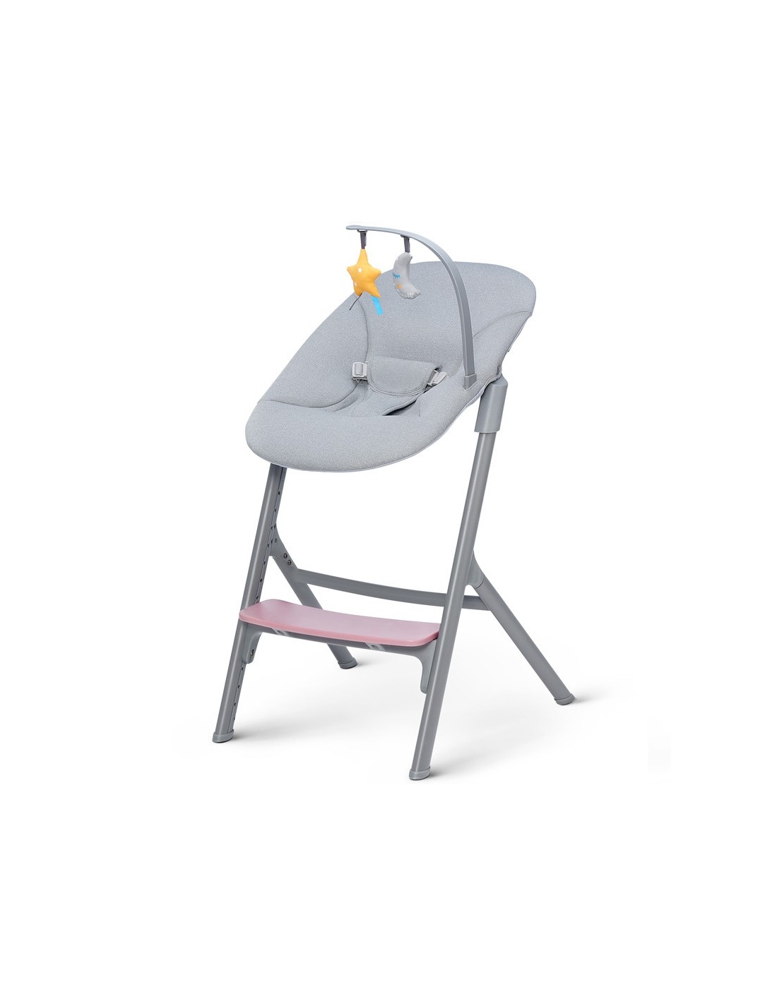 Una silla mecedora alta desde el nacimiento: puedes usar la hamaca junto con la trona o por separado. Gracias a los juguetes colgantes, tu hijo fomentará las habilidades motrices finas.